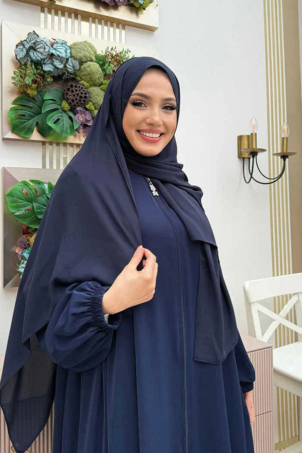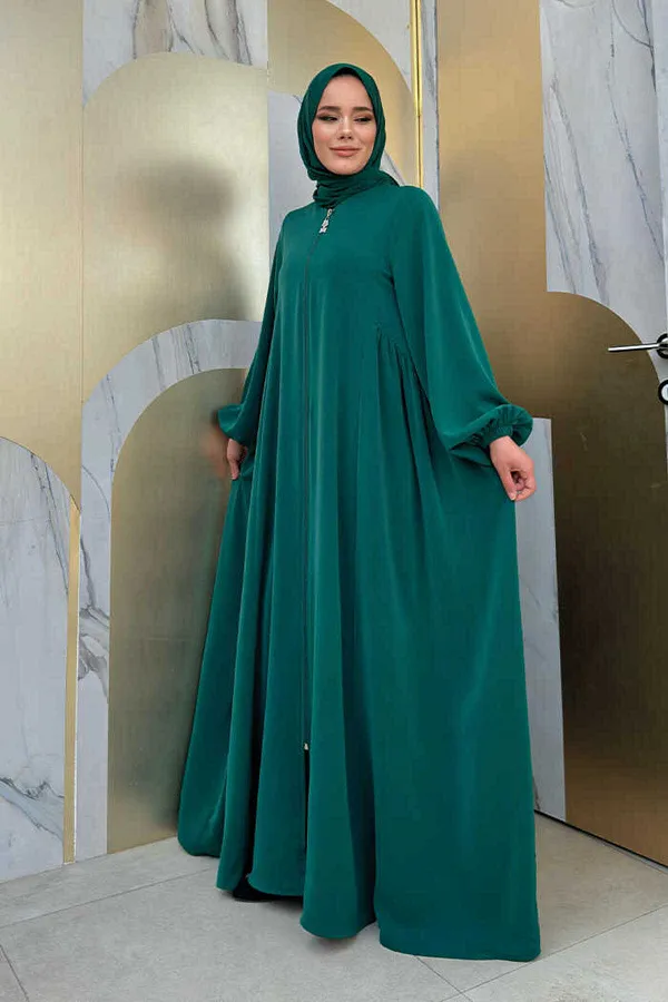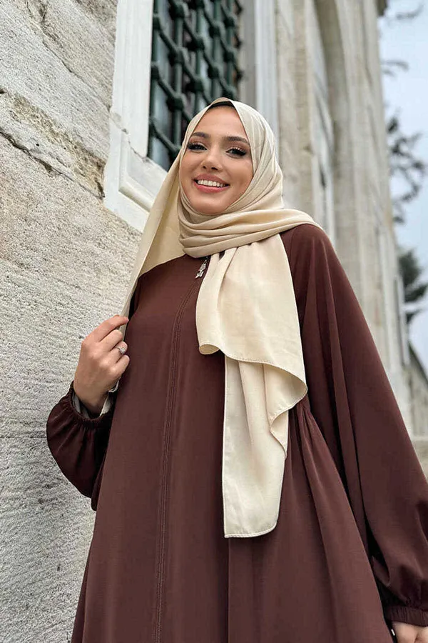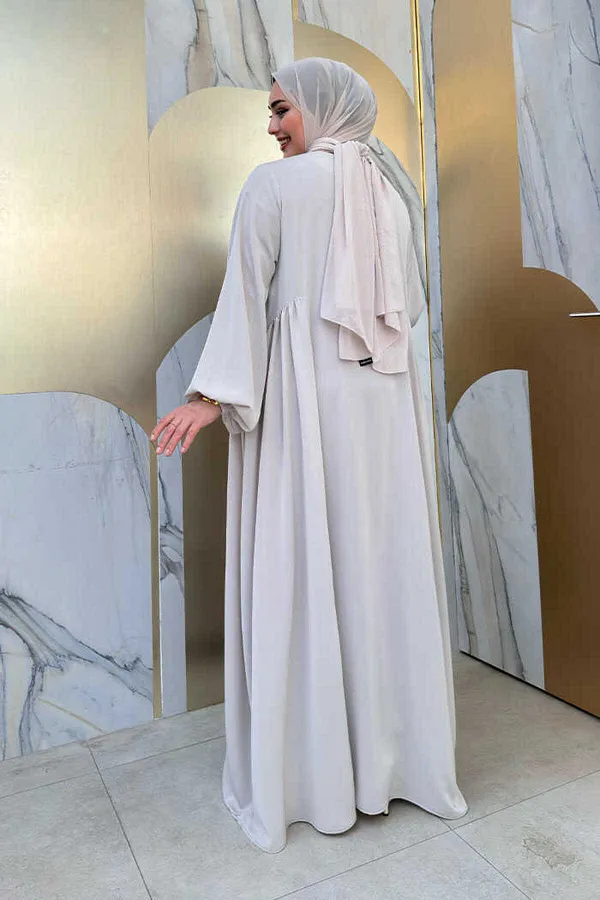 Abaya ample avec une longueur de corps et demi-col, taille qui convient à tous, avec matière Crepe Rosa, excellent type, légère et douce.
