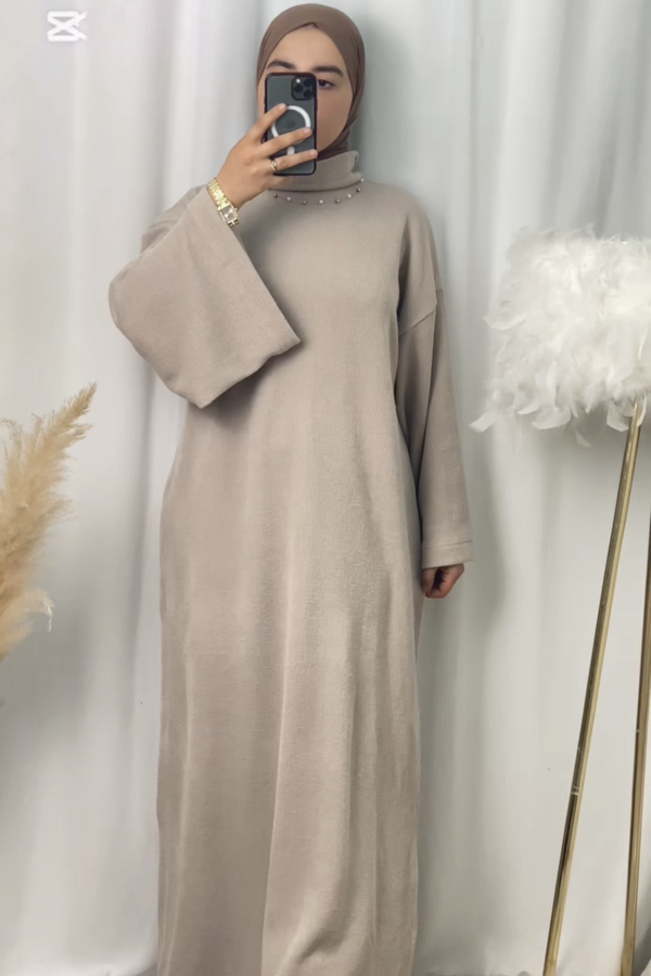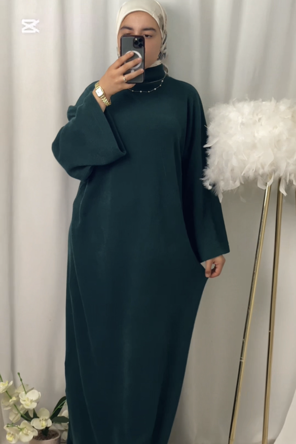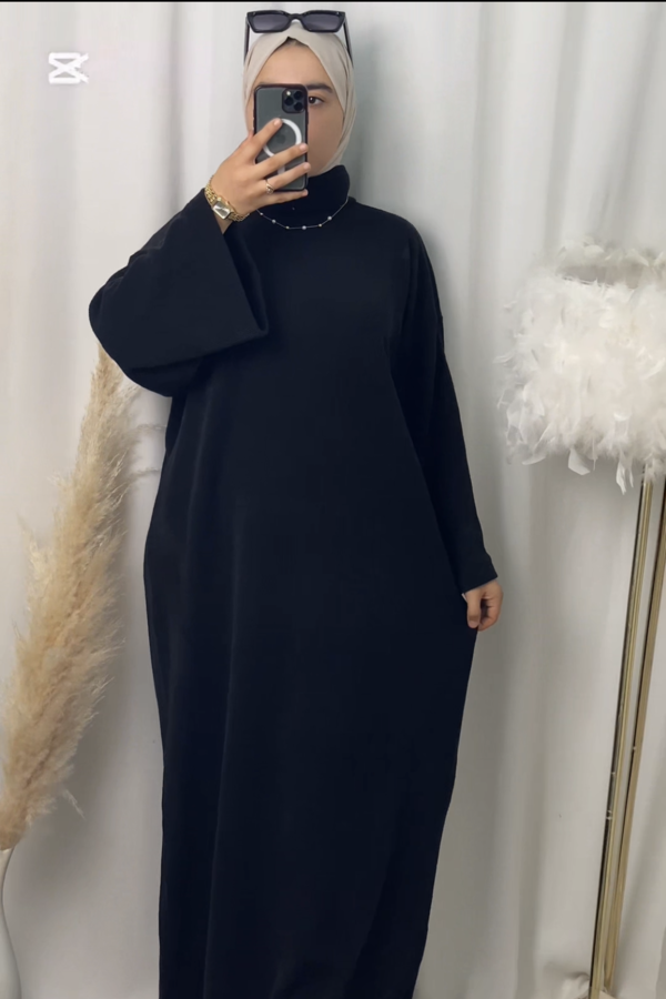 Abaya ample avec une longueur de corps et demi-col, taille qui convient à tous, avec matière Crepe Rosa, excellent type, légère et douce.